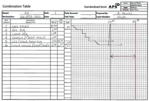 Having guiding principles, such as not putting an employee on an “island,” and creating standardized work is important. Isolating an employee to an area away from other people, regardless if the throughput is increased or decreased because of demand, the employee is still stuck with the same work content and may not be fully utilized. The basis for productive and efficient work is standardized work. It provides the baseline expectation and is the tool for problem solving if the person cannot perform the standardized work. If a person is trying to follow the standardized work, but cannot, then the focus is on the process, not the person.